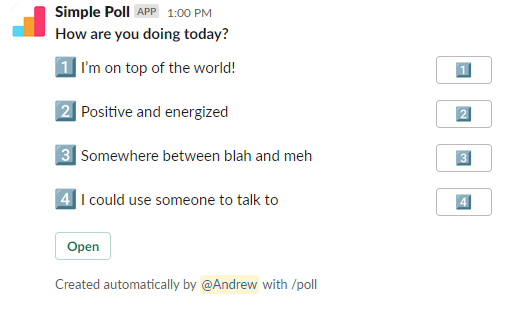 Locate the most recent instance of the recurring poll the channel and click the green Open button to open the Poll Management Window.