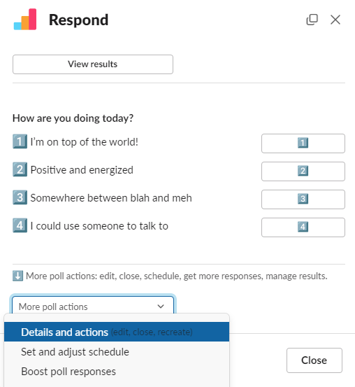 Select 'Details and Actions' and select 'Recreate' from the generated options. This will open a new Poll Creation Modal. You can make your required changes here.